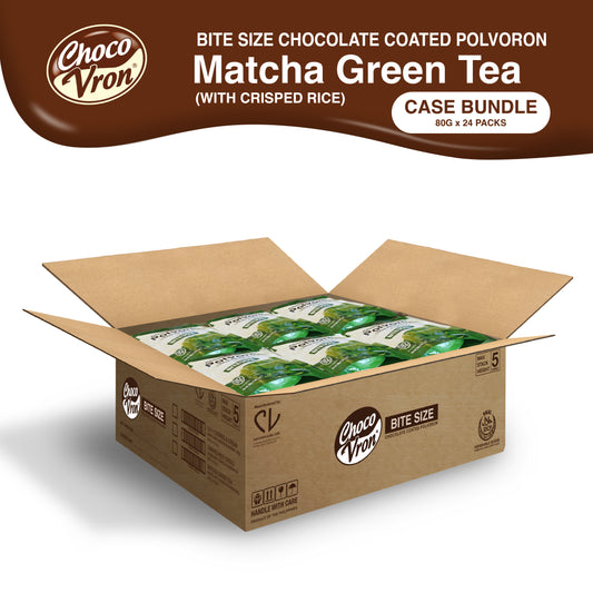 Bite Size Chocolate Coated Matcha Green Tea with Crisped Rice 80g Polvoron CASE BUDNLE