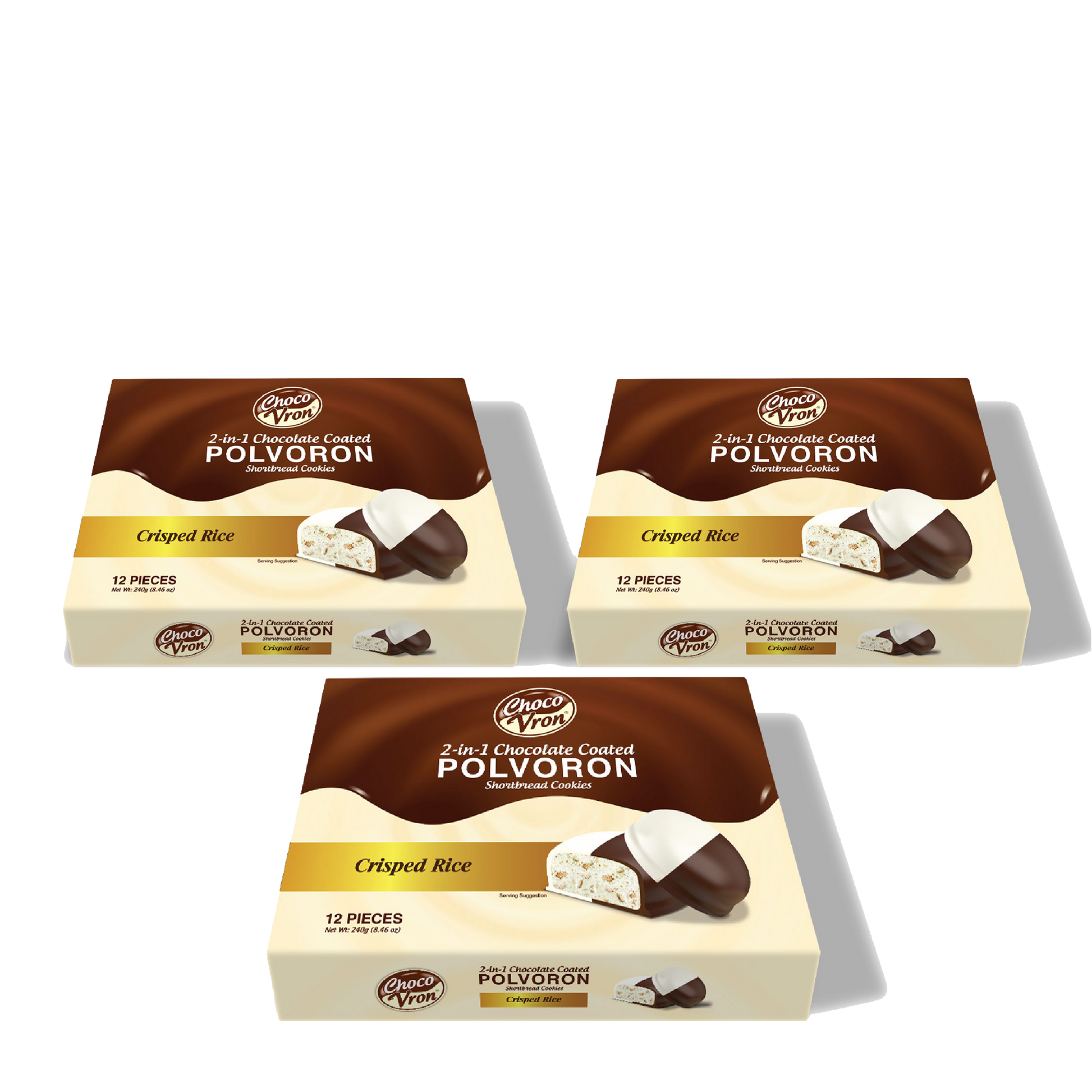 Gift Box 2 in 1 Chocolate Coated Crisped Rice Polvoron 240g TRIO BUNDLE